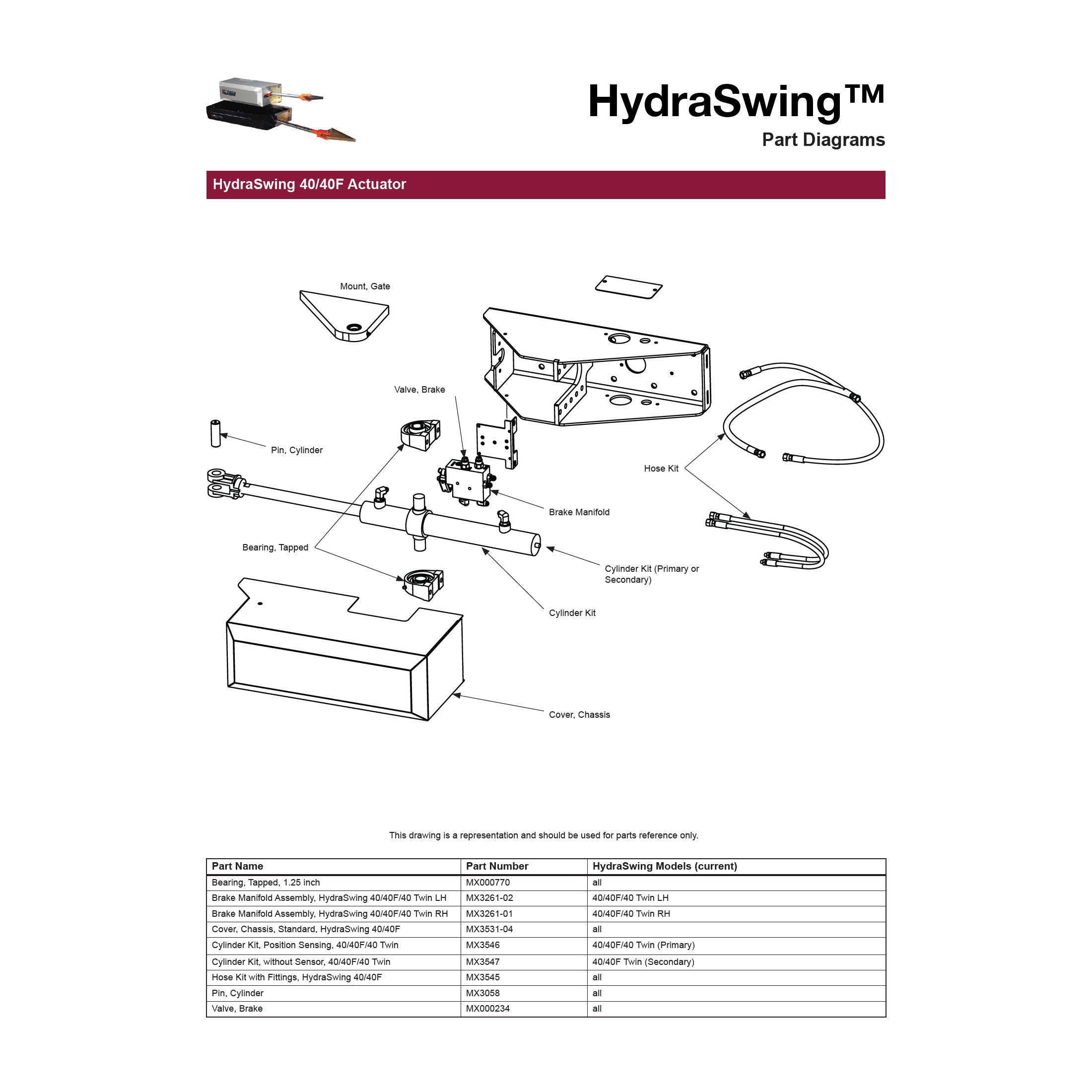 - Applications: Compatible with HydraSwing 40, 40F, and 40 Twin gate operators.